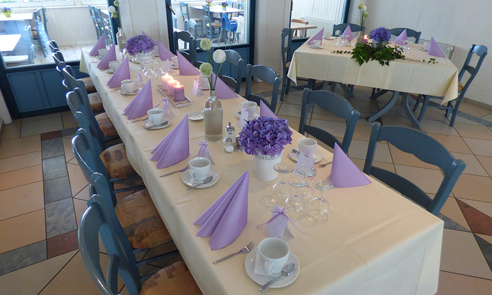 Täglich bieten wir Ihnen unser reichhaltiges Frühstücksbuffet an. In der Zeit von 8.00 - 10.00 Uhr können Sie bei uns mit gutem Kaffee, leckeren Brötchen, hausgemachter Marmelade, frischem Obst und viele anderen Leckereien in den Tag gut gelaunt starten.